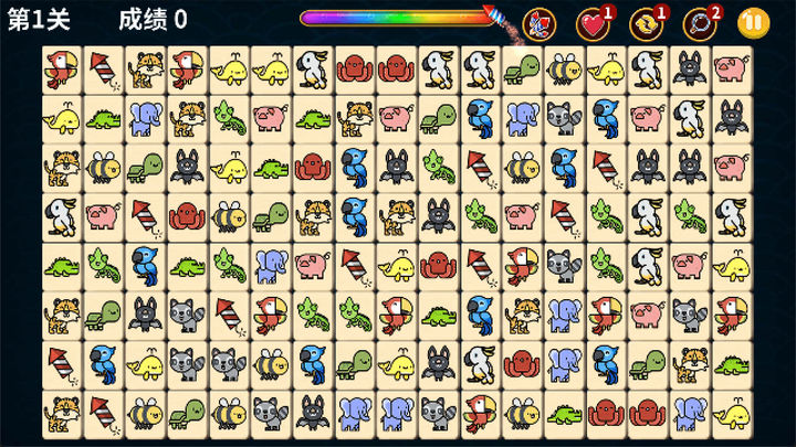 2、动物世界连连看中两个或多个相同颜色的图案,这会带来更多的积分。
