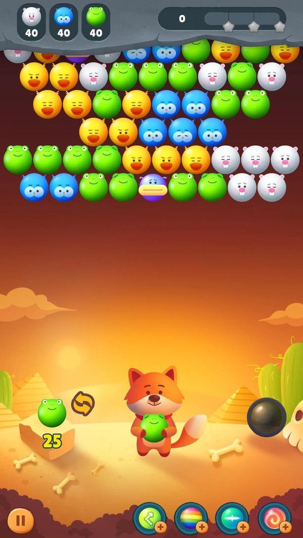 泡泡狐狸作为一款老少皆宜的泡泡消除类型的手游,通过简单的操作体验极致的消除乐趣,将颜色相同的泡泡全部消灭。游戏以卡通风格为主,适合休闲放松,通过点击将彩球射向相对应颜色的泡泡来完成任务。拥有超多的关卡和不同的玩法,操作简单,适合任何年龄阶段的用户。简单有趣的玩法、多种颜色的泡泡以及适应用户水平的难度提升。