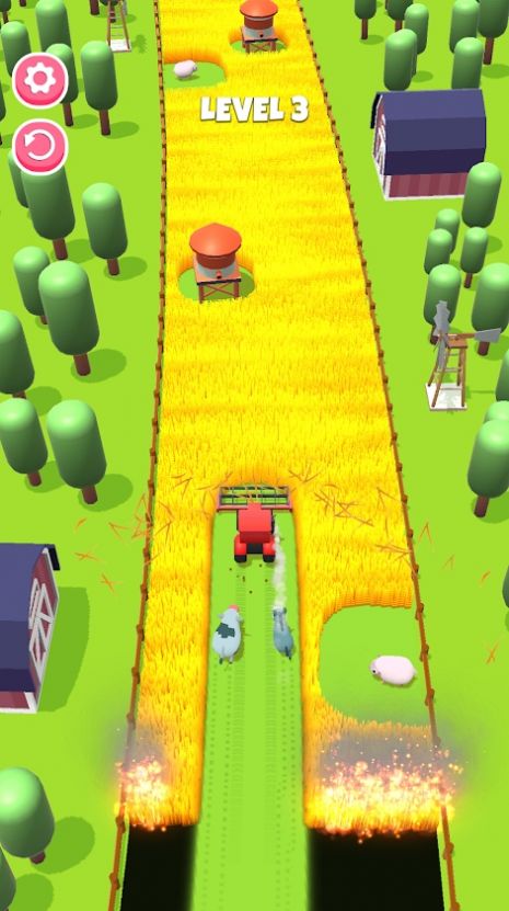 1、农场位于一片草原之中,大火即将蔓延过来,想要拯救农场,就赶紧驾驶除草车