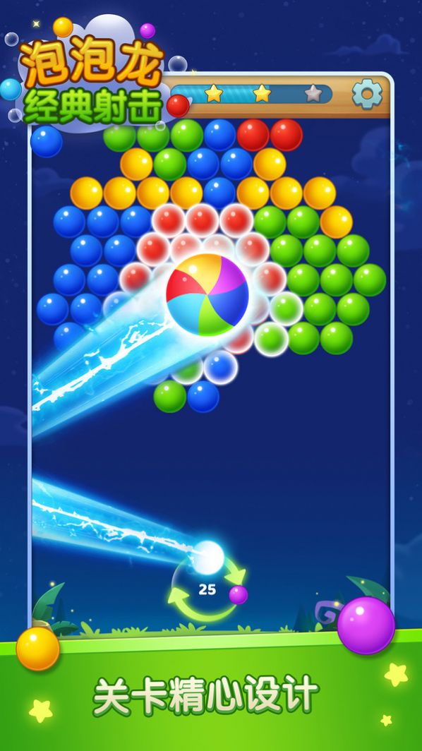 泡泡龙经典射击作为一款休闲娱乐类型的手游,在游戏中你可以尽情享受消除泡泡的乐趣。同时游戏具有简单易懂的操作和清新可爱的画面风格,丰富多样的关卡设计和挑战模式也让游戏充满了乐趣,让你轻松愉悦地度过每一刻,你能在游戏里体验更多经典射击元素和玩法。