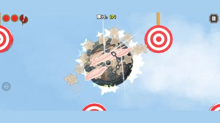 1、【精准斩击】:通过触摸屏幕进行斩击,尽量将水果切成尽可能多的碎片。