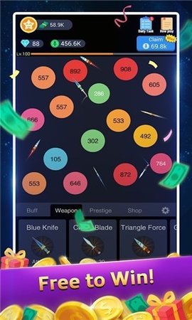令人兴奋的游戏,开启刀或通过关卡赢得巨大的回报。是时候拥有你的刀了!