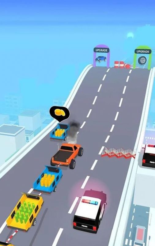 2、避开各种障碍物,并且还可以击倒警车,获得维修通道,保持车辆正常行驶。