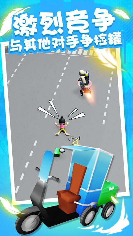 2)垃圾车可升级,让你的垃圾车变得更加强大,提升驾驶技术,打败竞争对手。