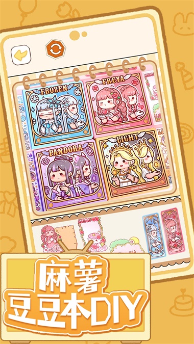 麻薯豆豆本DIY是一款贴纸换装游戏,可以通过选择不同的图案、颜色和形状来制作出属于自己的手账贴纸。游戏中还有许多おもしろい贴纸套装,您可以根据自己的喜好挑选适合自己的贴纸,制作出更加精美的手账本。有各种手账本模板供您选择,您可以根据自己的需要进行选购,选择适合自己的手账本模板。