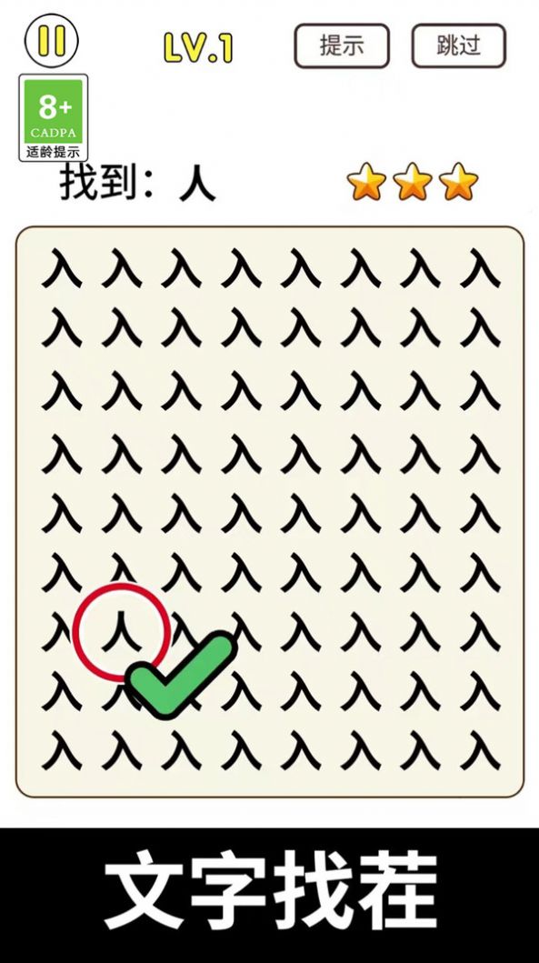 猜字小天才作为一款相当考验用户眼力的找不同游戏,大量的关卡在游戏里面等着你去挑战,在游戏中每个关卡中都有不一样的考验,在游戏里玩家需要在大量的汉字中找到唯一一个不同的汉字,而且这里的挑战是有时间限制的,在规定的世界内完成才能挑战成功,这类游戏的爱好者可以下载猜字小天才开启挑战哦。