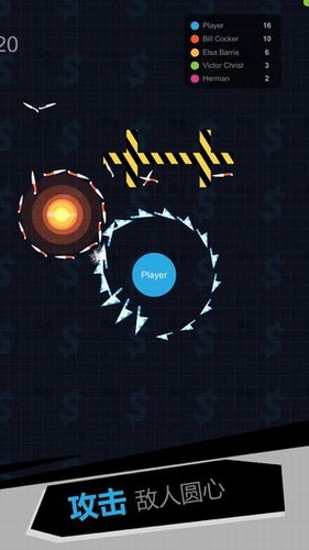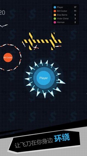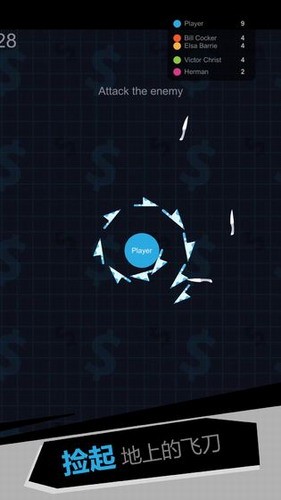 2、旋转飞刀攻击弱小的敌人,让他的飞刀成为你的一部分,慢慢的变得更加强大起来。