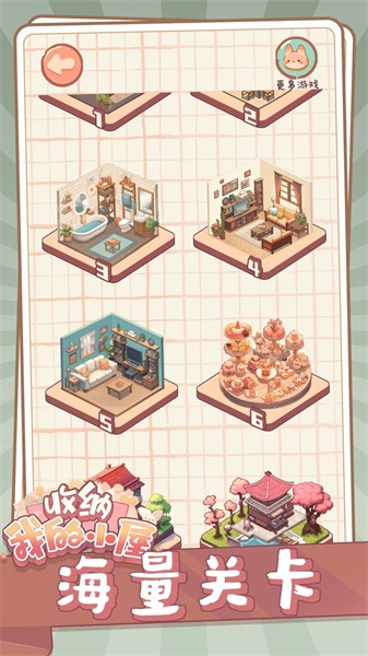 收纳我的小屋作为一款非常有趣和轻松的整理收纳游戏。游戏通过温馨的故事情节和轻松愉快的氛围,使玩家能够享受整理收纳的乐趣。在游戏里玩家可以自由选择不同的房间和物品进行整理,通过分类、整理和清洁每个房间,达到最高的分数。