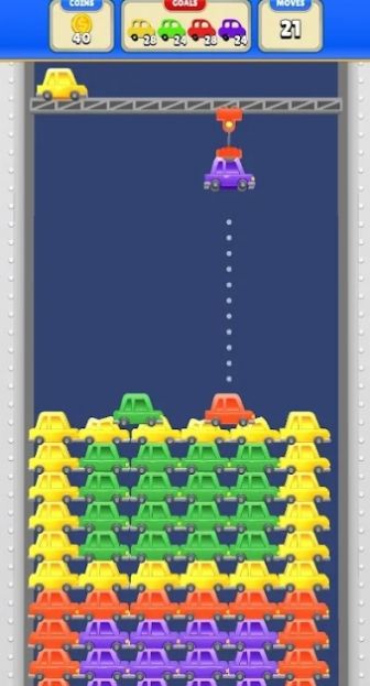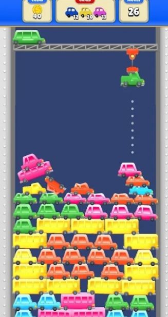 3、优先消除同色系堆叠较多的汽车部件,增加得分。