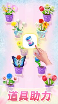 1、用户可以选择一个喜欢的关卡开始挑战,将相同的花朵插入同一个花瓶中。