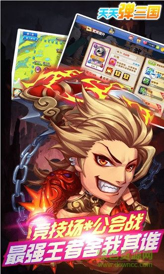 一款全新的三国题材的策略战斗手游,Q版卡通游戏风格打造,画面非常精致,丰富的三国名将还原,每个英雄都有独特的属性天赋,在天天弹三国变态版手游中,玩家将扮演主公,招兵买马,攻城略地,一统三国天下。