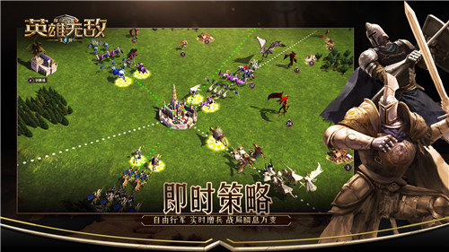 - 大地图战斗即时策略:行军过程中可随时调整行军路线,声东击西。同时根据战局需要,调动多只军队加入战场,还可以邀请盟友派兵支援,根据战局发展策略性补充兵种,策略瞬息万变。