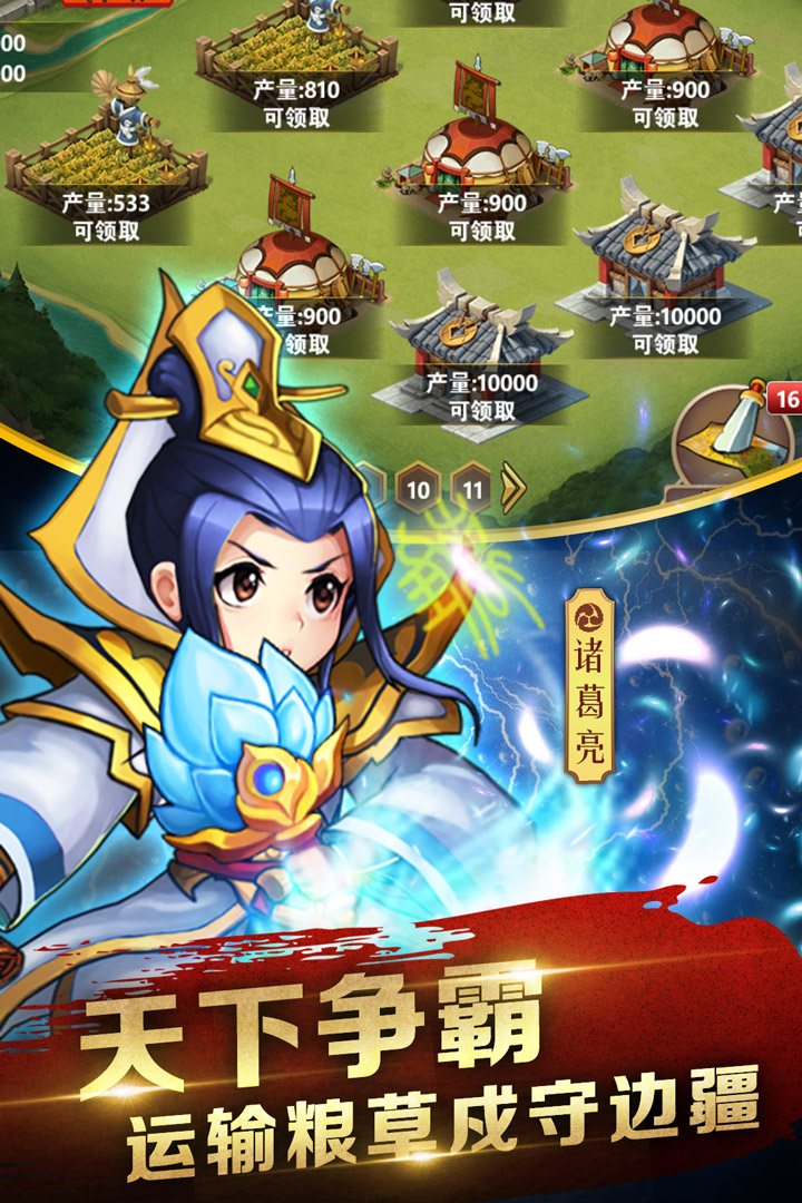 主公快点九游版是一款采用经典的三国题材的策略卡牌类手游游戏中丰富的三国经典人物等你来练习,游戏利用精美可爱的Q版萌系画风将三国世界完美制作出来,并且所有的人气将士与战役都给复刻下来,将你的战士都训练成最强大的不对,玩家可以自行对喜欢的英雄角色进行招募哦。