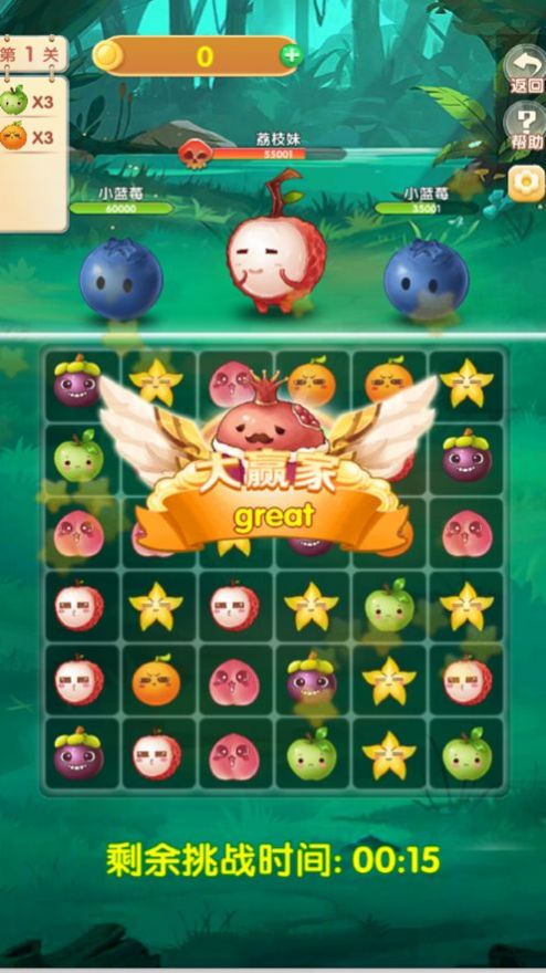 水果派队是一款限时挑战三消打怪兽类游戏,在游戏中玩家可以体验到最有趣的消除内容,海量的关卡将会给你带来更多不同的选择,在规定的时间内消除更多怪兽即可获得丰厚的奖励,同时随着关卡难度的提升,你将会面对更多不同的挑战会给你带来更多不同乐趣,更多玩法内容你可以不断解锁让自己的挑战更加丰富,等你参与体验。