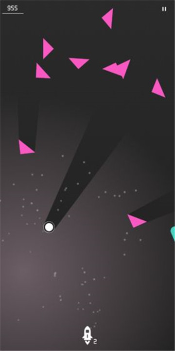 画面简约,游戏中只有四处飞舞,色彩缤纷的各种图形,玩家操纵着白色的小圆点,需要避开尖锐的三角形。