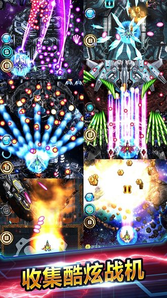 2.多达9架超级战机参战,各配备3种超炫武器和独特炸弹。