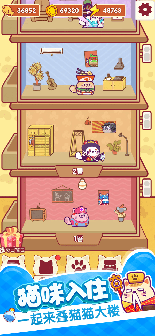 叠猫猫公寓楼,猫猫越多,大楼越高!