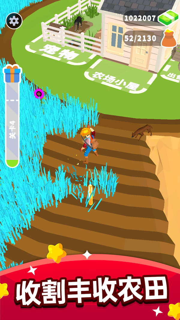 疯狂割草机是由深圳市雪道科技有限公司代理发行的一款趣味经营游戏可以选择不同的收割方式,整个过程的操作很简单,收割农田里的庄稼,解锁新的道具。