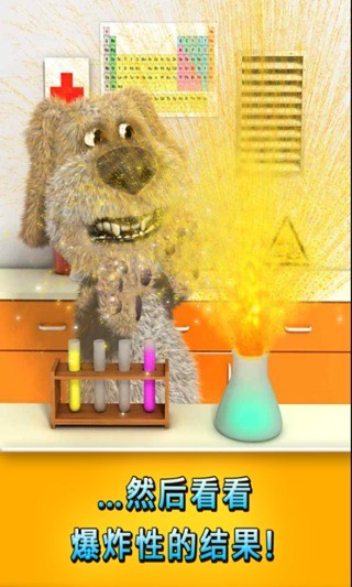 会说话的狗狗本是休闲益智游戏,目前作品仅支持安卓手机,喜欢的玩家可以试玩,会说话的狗狗本讲述的是一名退休的化学教授,他很享受品尝美食.美酒和阅读报纸的宁静舒适生活,如果你把本带到实验室,他就会欢呼雀跃。在那里,你可以通过把两支试管混合在一起做化学试验,观察各种神奇的反应。