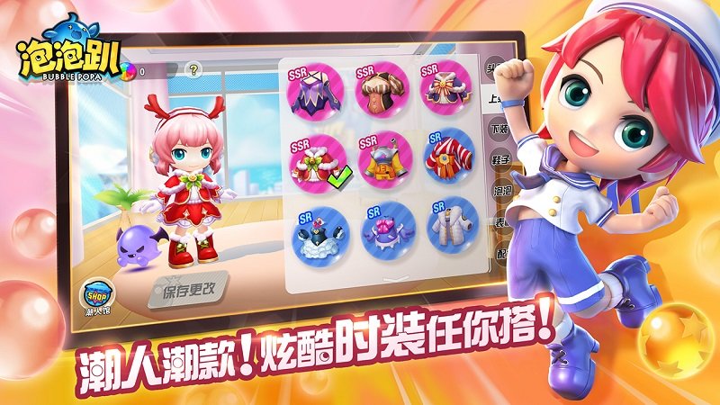 在游戏中,玩家可以获取海量流行前卫、个性张扬的精美时装。打开华丽衣柜,随心自由搭配,打造属于自己的时尚潮装!从帽子、表情、上衣,到裤子、跑鞋、泡泡外观,总有适合你的闪亮装扮,让你成为众人瞩目的焦点!