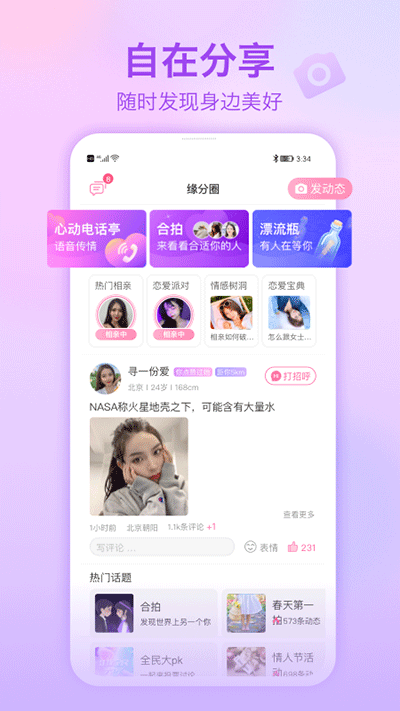 3、用户可以发布动态或小视频,彰显个人风采,吸引更多异性关注;