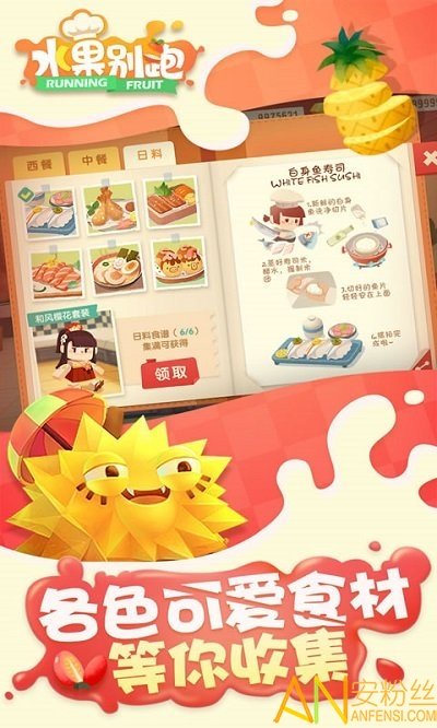 水果别跑安卓版是一个全新的充满卡通色彩的益智休闲游戏,在游戏中,玩家扮演卡通小厨师,通过与卡通食材大军的战斗、收集和升级,来体验料理美食的乐趣和精髓,游戏有着超治愈系清新可爱的美术画风,围绕战斗、升级、转生、收集、烹饪5大系统展开乐趣横生的游戏体验,各式各样超萌的食材怪物等你挑战,香菇、青椒、牛肉、西瓜、凤梨、火龙果等,自由搭配组合出无限可能,玩家要做到的就是在餐桌上将这些食材都全部砍切掉,然后收集和升级食材,到厨房去烹饪美食!