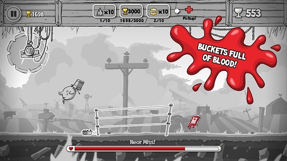 这款无头鸡狂奔的创作灵感来源于美国的一只被斩首却存活了18个月的无头鸡麦克,这是一款跑酷类游戏,游戏中有不少血腥的场面,但整体风格依旧颇为诙谐。如果你喜欢蒂姆·伯顿的理发师陶德,那么这款游戏绝对适合你,黑白的画面让红色的鲜血格外显眼,但在你玩过一段时间之后,又会觉得红色的鲜血与背景很完美地融合在了一起,完全没有突兀的感觉。