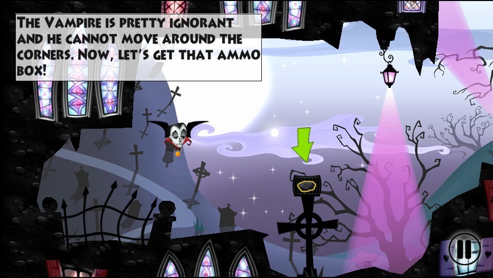 残忍的吸血鬼在城市里大肆搞破坏,比如用捡到的石头砸坏路灯,或者用炸弹炸开障碍物等等,最终来到公主的身边,。要注意的是被灯光照到会受伤,每关只能3次受伤太多就会死掉了。来自欧洲的休闲小游,吸血鬼和朋友们一起庆祝自己的生日派对,和小吸血鬼一起解开各种物理难题。剪纸风格的物理解密游戏,玩家扮演一只有蝙蝠翅膀的吸血鬼。