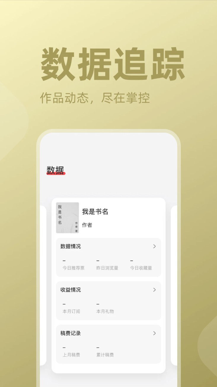 1. 网文平台签约作者,随时查阅数据、管理章节,提高连载效率。