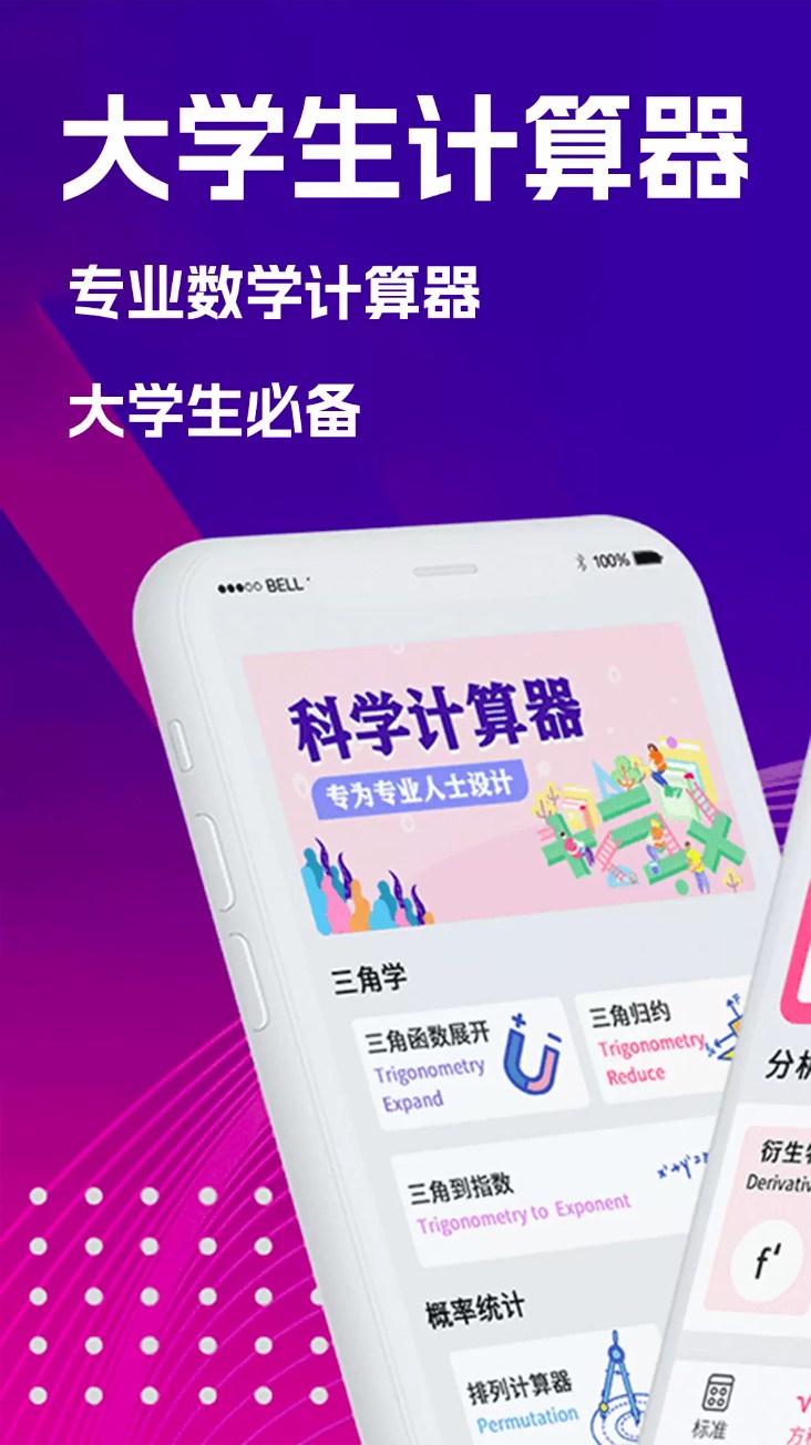 2. 内置科学计算模块,支持三角函数、对数、指数、根式、排列组合等高阶数学公式运算。
