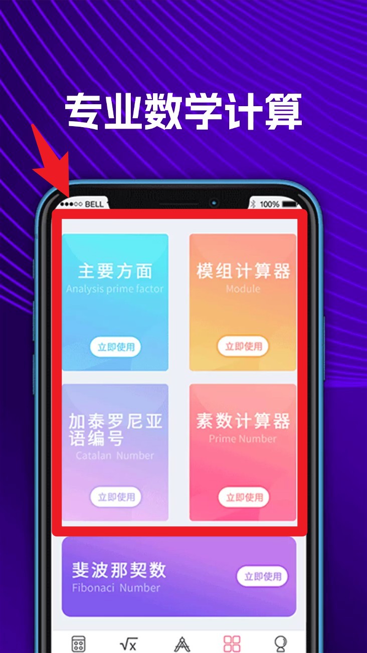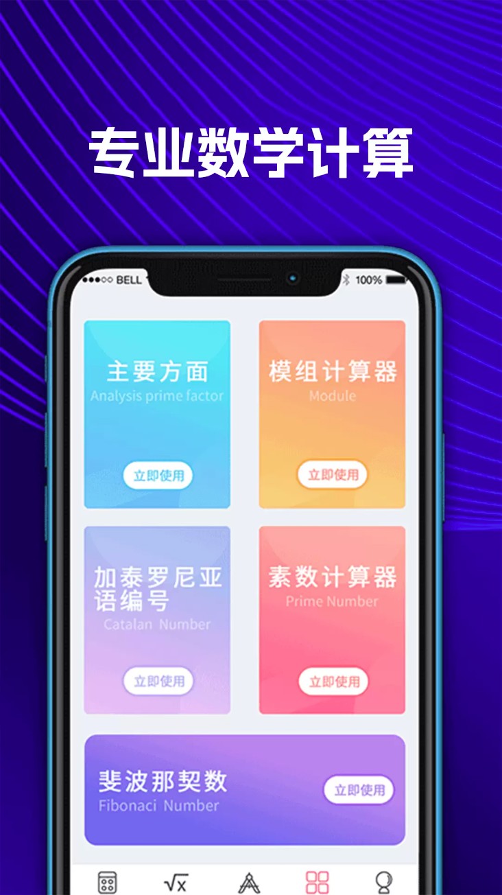1. 打开首页后可选择多种数学功能模块,如素数计算、模组运算、加泰罗尼亚数等,点击“立即使用”即可进入对应计算界面。
