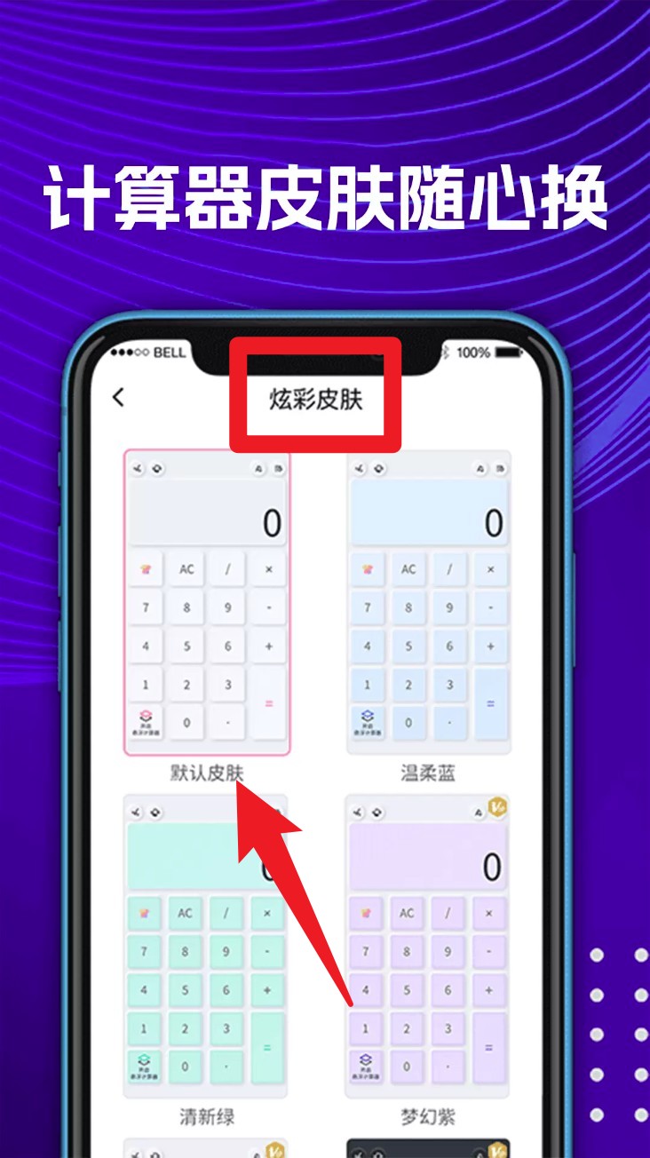 2. 点击“炫彩皮肤”可切换不同主题风格,提供多种配色方案如梦幻紫、清新绿等,支持自由预览与一键应用。