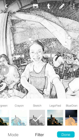 3、支持全景照片编辑,添加滤镜,文字,表情符号等