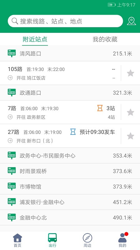 附近站点:便于查看附近公交站点,快捷查询