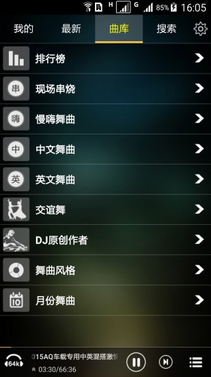 2、曲库,在曲库中有各种的舞曲以及排行榜单带来的各种音乐内容来帮助用户更好地进行享受不同音乐带来的魅力