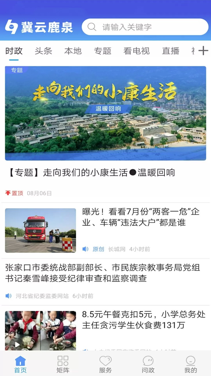 1. 进入“首页”标签,可浏览时政、头条、本地等栏目内容,实时掌握鹿泉区最新新闻动态。