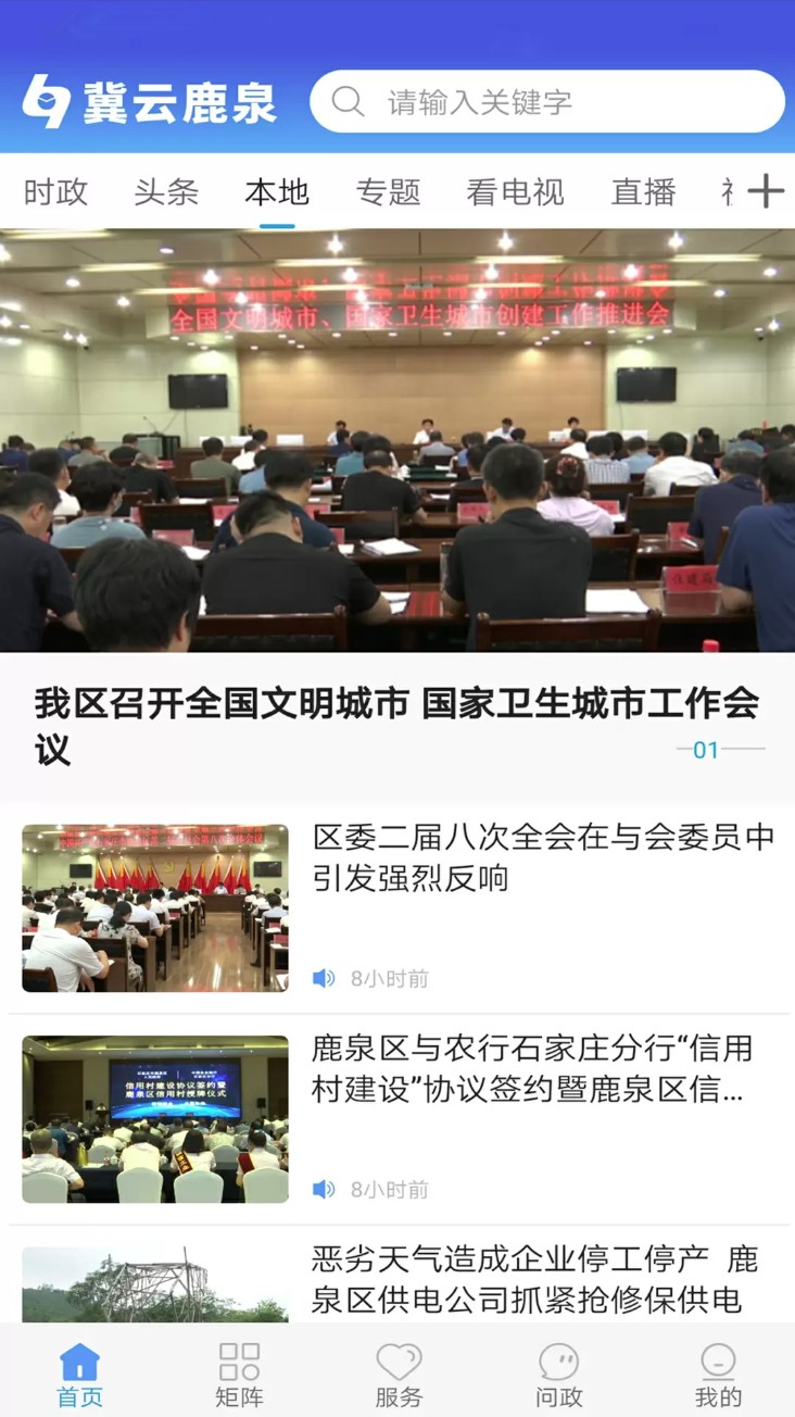 2. 切换至“本地”栏目,查看鹿泉区重要会议、城市发展、民生资讯等重点报道。