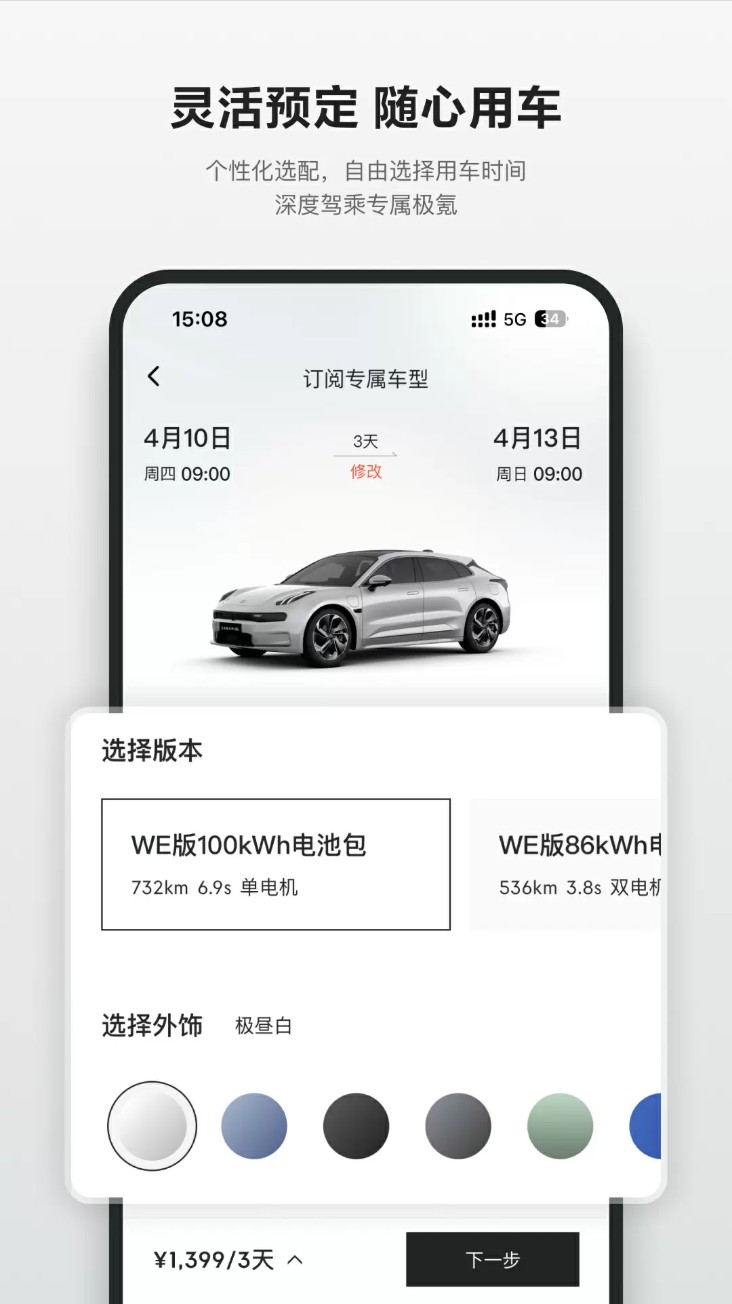 1. 出差去杭州两周临时用车,用极氪订阅一键下单,车型新还送到家,体验太丝滑。