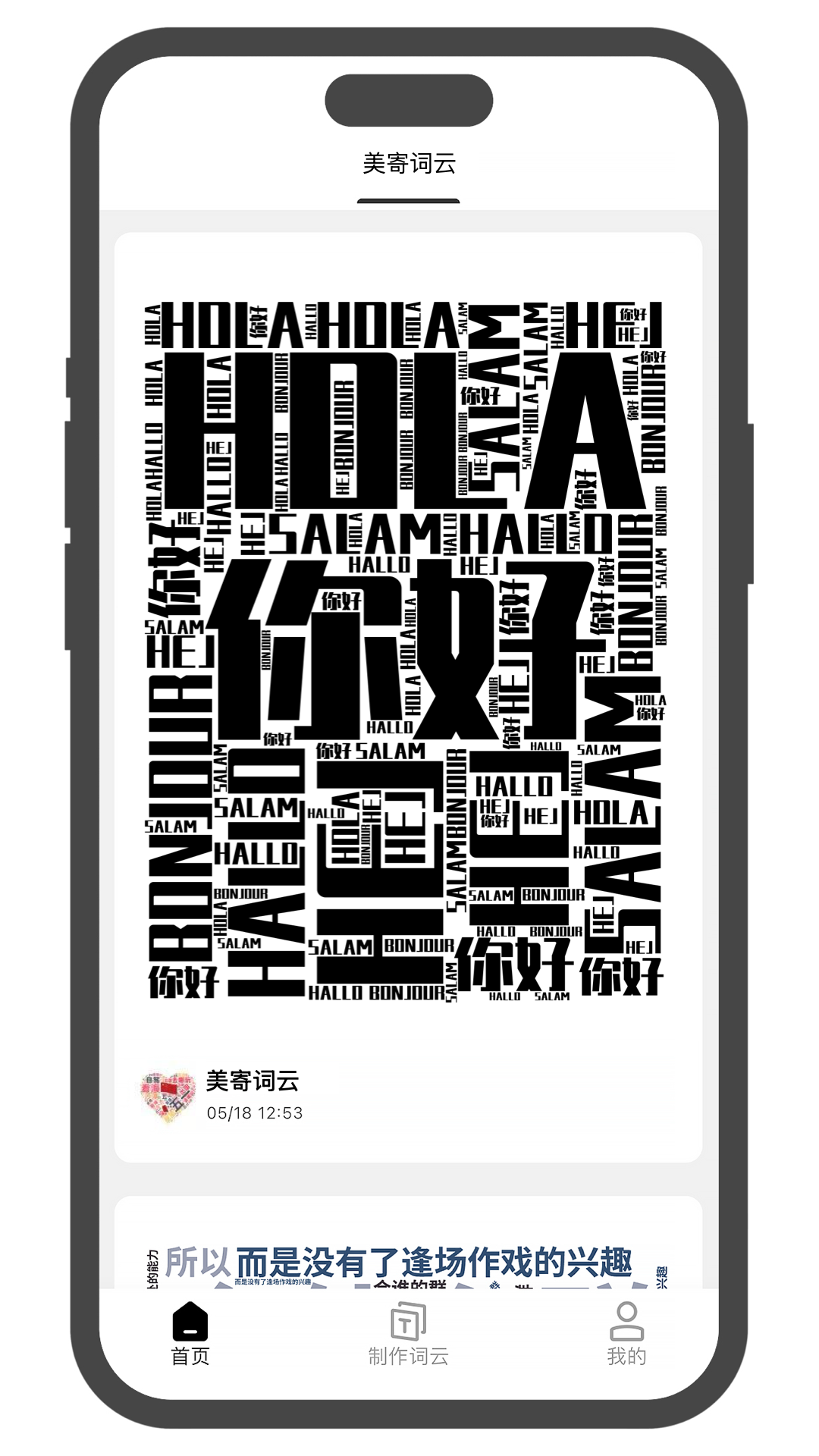 1.打开美寄词云App,在词云编辑页,找到文本输入框,直接输入需要生成词云的文字