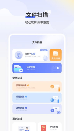 1. 文件扫描:只需开启扫描功能对准各种手写文件. 试卷. 票据等,系统就能快速在手机上显示出对应的内容。