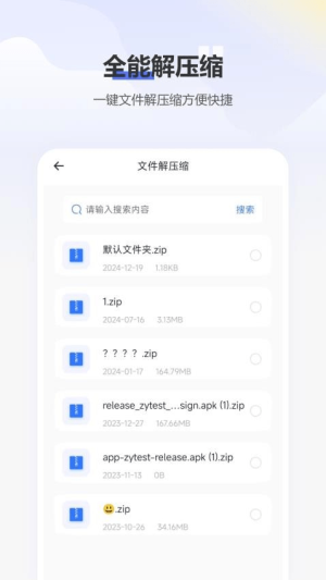 文件助手安装包是一款能帮助用户进行文件解压缩的实用软件,无论你手机上有什么格式的文件,pdf、word、txt、jpg、mp4,都能将其压缩成不同的压缩文件,同时你还能对其进行各种修改操作,例如重命名、移动、删除、复制等等。