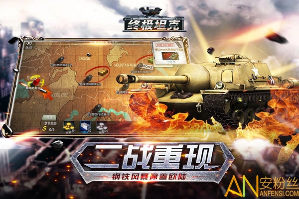 2019最刺激真实的坦克对战手游,游戏为玩家还原经典的二战战役,玩家将穿越回真实的二战战场,运筹帷幄,所向披靡!数十辆经典的陆战坦克、步兵战车、侦查车、反坦克炮等现代装甲武器都将荣耀登场,加上逼真的战场场面还原和重装的武器配置,带你重回二战世界,感受最真实的硝烟弥漫、炮火肆虐的战争年代!