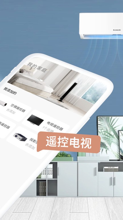 1、在首页中可添加空调、电视、投影仪与风扇遥控器,整合家电操控更轻松。