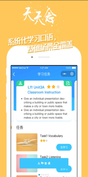 2.根据自己的需求选择不同的学习模块,如词汇、语法、听力、口语等。