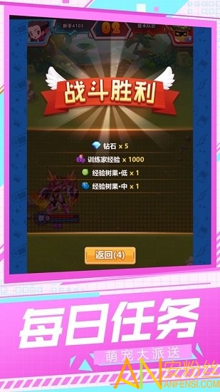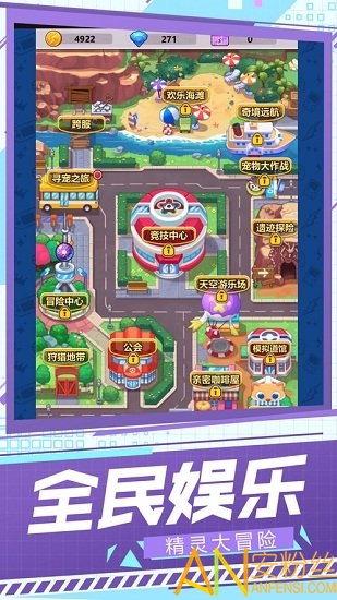 游戏内通过道馆对战、免费扭蛋、在线任务等方式,扩大自己的精灵数量,对抓取的精灵进行升级强化以及进阶。