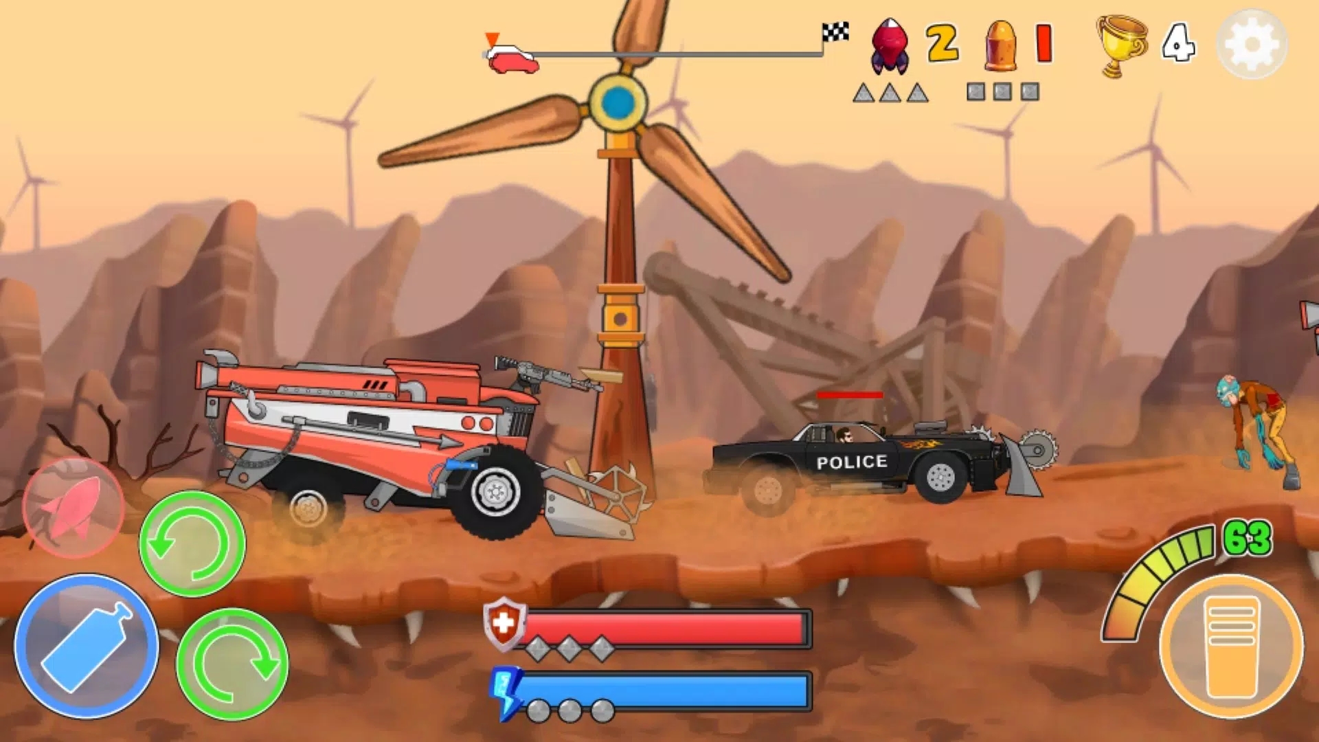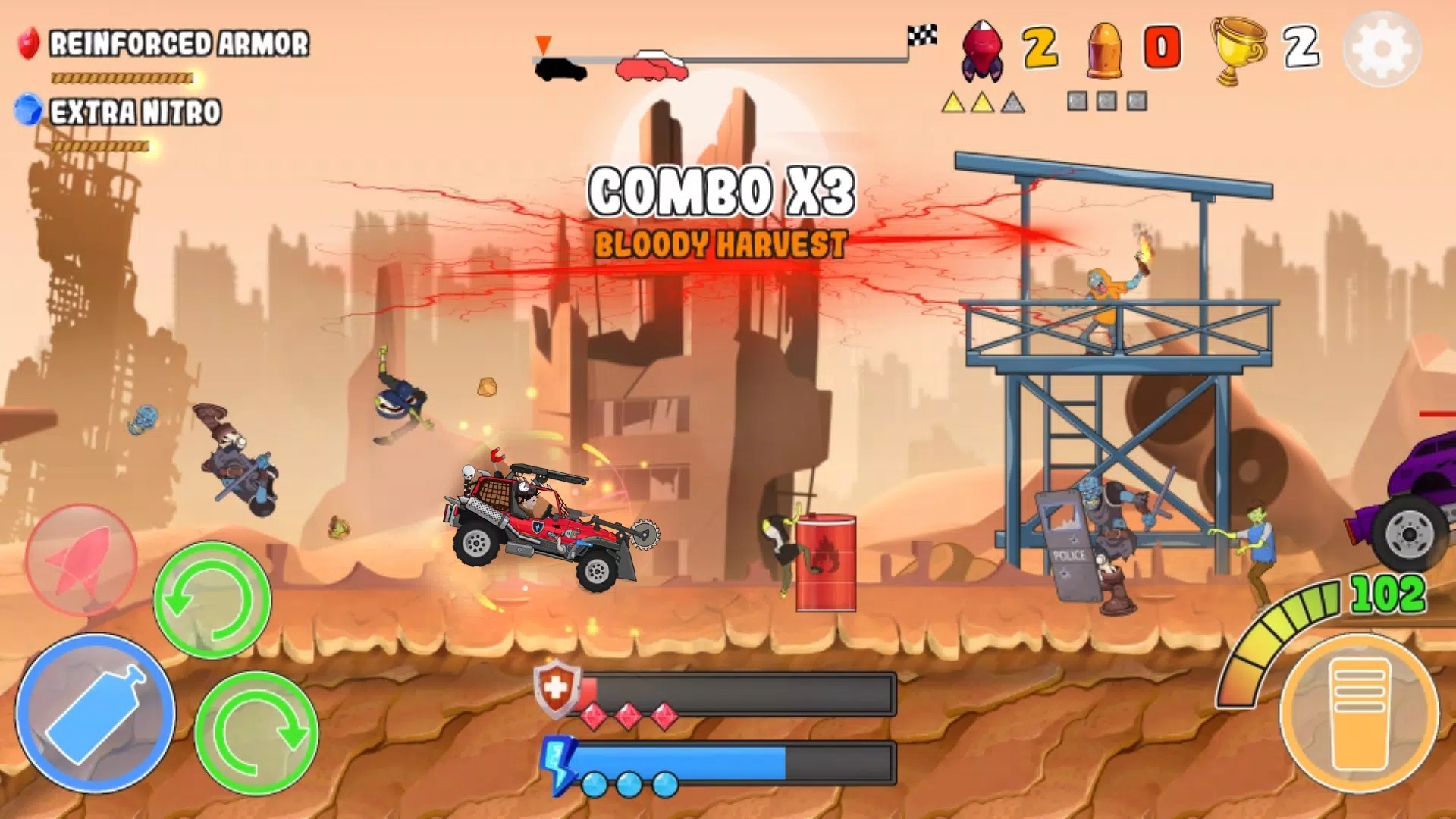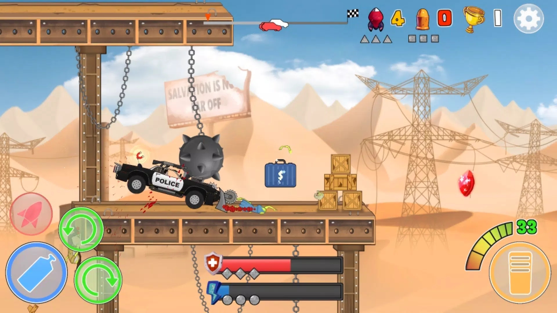2. 行驶在赛道上:在赛道上,玩家需要不断驾驶车辆前进,避开僵尸和其他障碍物。