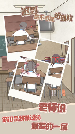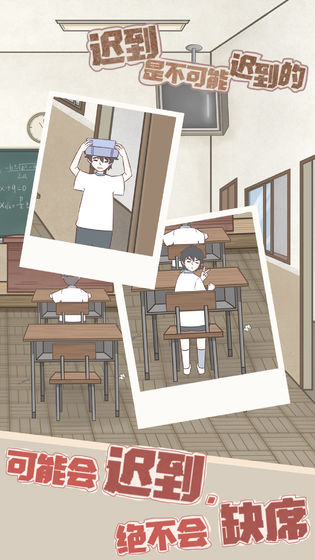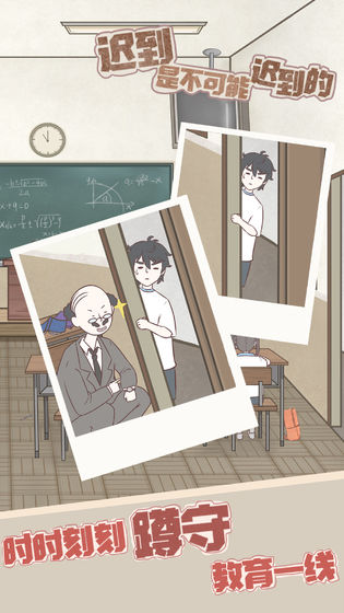 迟到是不可能迟到的是一款脑洞大开的解谜益智游戏,上学的时候总会出现一些“时间穿梭”的意外,眼睛一闭一睁,就要迟到了!在迟到是不可能迟到的游戏中,主角也逃不过这样的命运,玩家需要寻找道具帮助主角不要迟到,如果不幸迟到了,将会接受教师天团的“爱的洗礼”哟~感兴趣的小伙伴快来下载迟到是不可能迟到的体验吧。