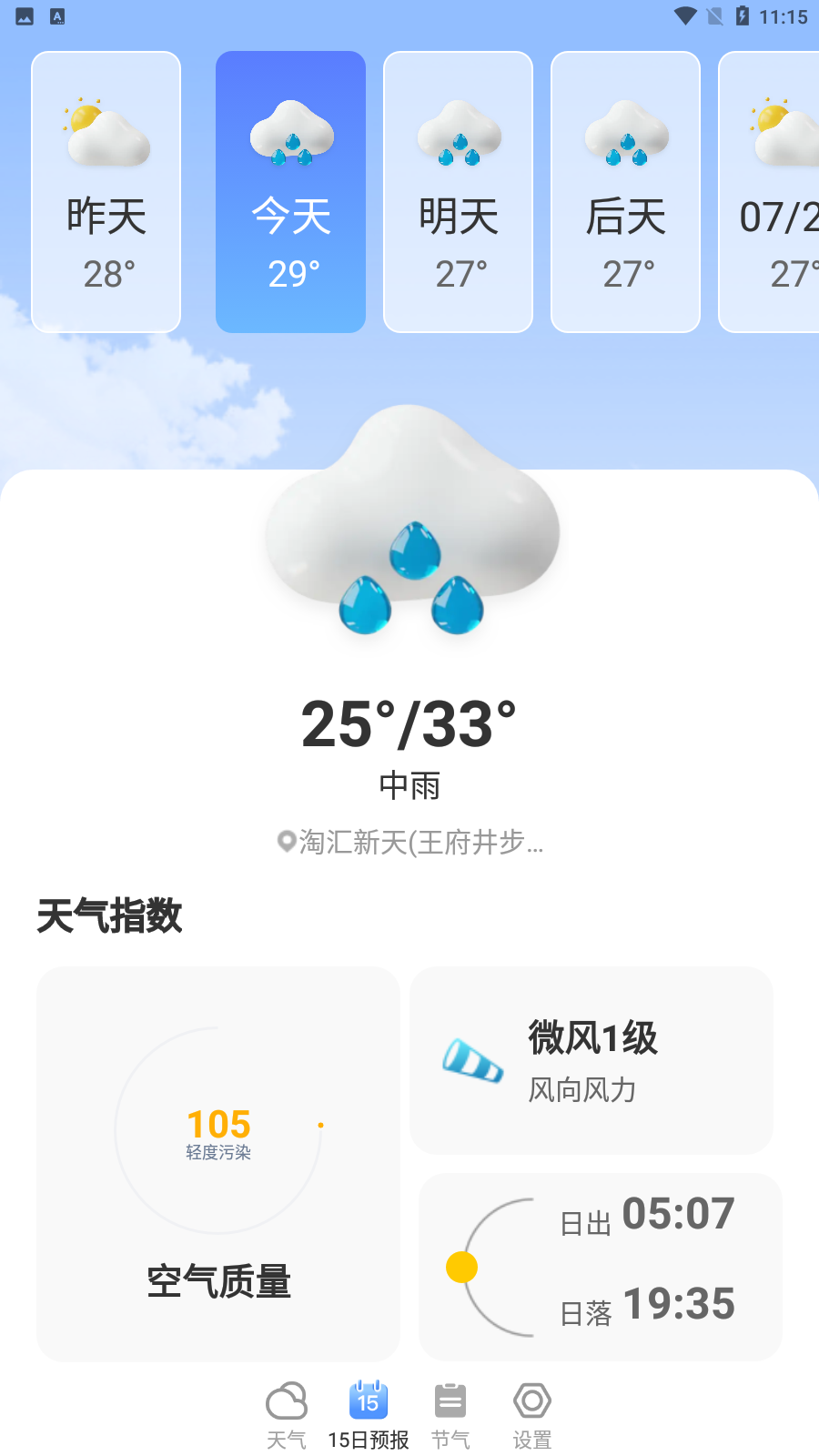 3. 定位设置:允许软件获取位置信息,以便获取所在地区的天气信息。