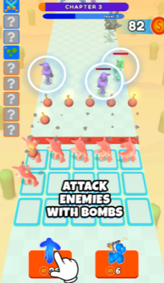 1、游戏模拟了自走棋的玩法方式,通过合并果冻人来升级,可以因对敌人来合并最强的阵容;