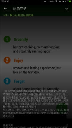 绿色应用公约是一款由绿色守护开发者oasisfeng发起的以健康的安卓生态为目的的安卓应用公约,安卓绿色应用公约功能强大,用户在遵循公约的前提下使用软件,后台不费电、手机不卡顿,跟iPhone一样省心,还在为手机卡顿,高耗电而忧虑的朋友快来下载使用吧。